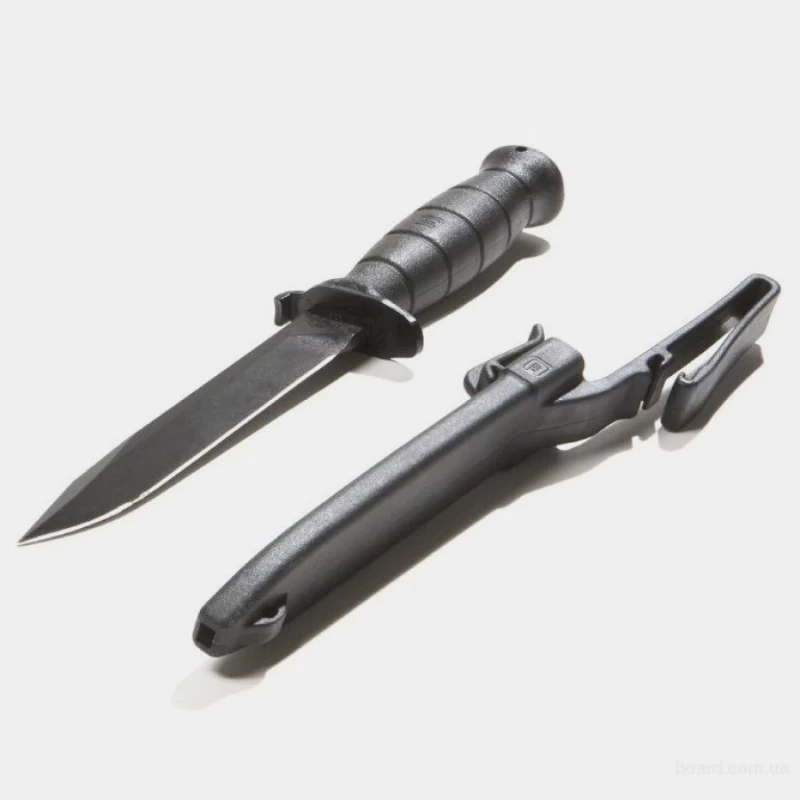 The Glock knives come with high-strength Glock polymer sheaths and feature a retaining clip that secures the knife against loss, and a clip to attach the knife to a belt and also a drain opening at the bottom.