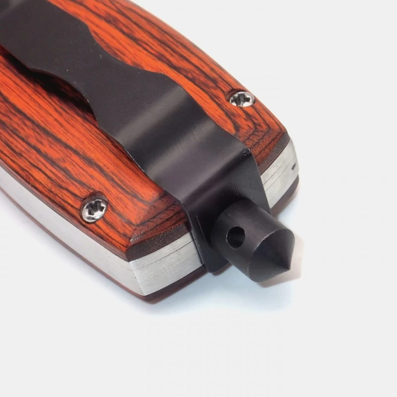 – The knife has a handy clip and tip, integrated into the offensive glass breakage in the back of the handle and it enables you to get out of a crisis situation.