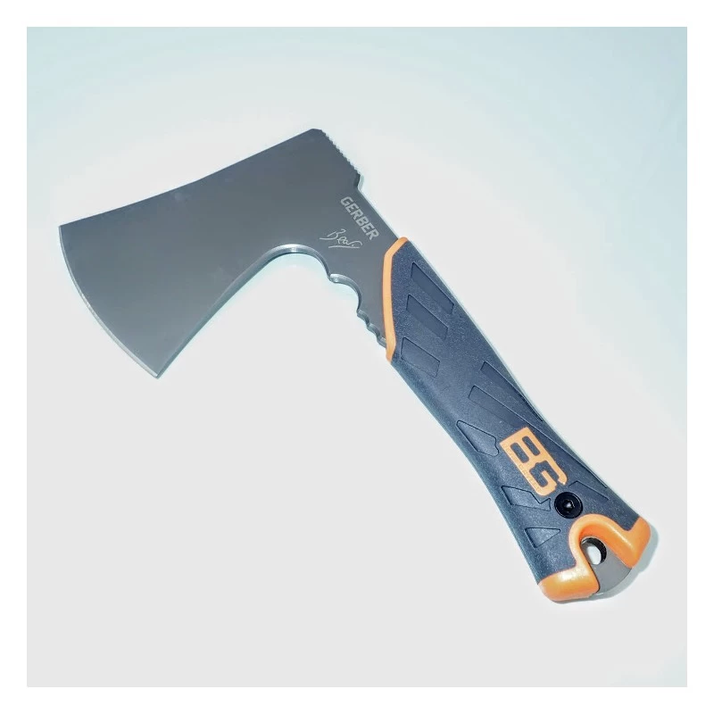 Compact, powerful and versatile Survival Hatchet Gerber has a lot of advantages over similar products. Its ergonomic handle with notches for the fingers, the small size and weight, razor sharpness and durability make it one of the most popular tools to perform multiple operations. An ax can be used as a hammer.