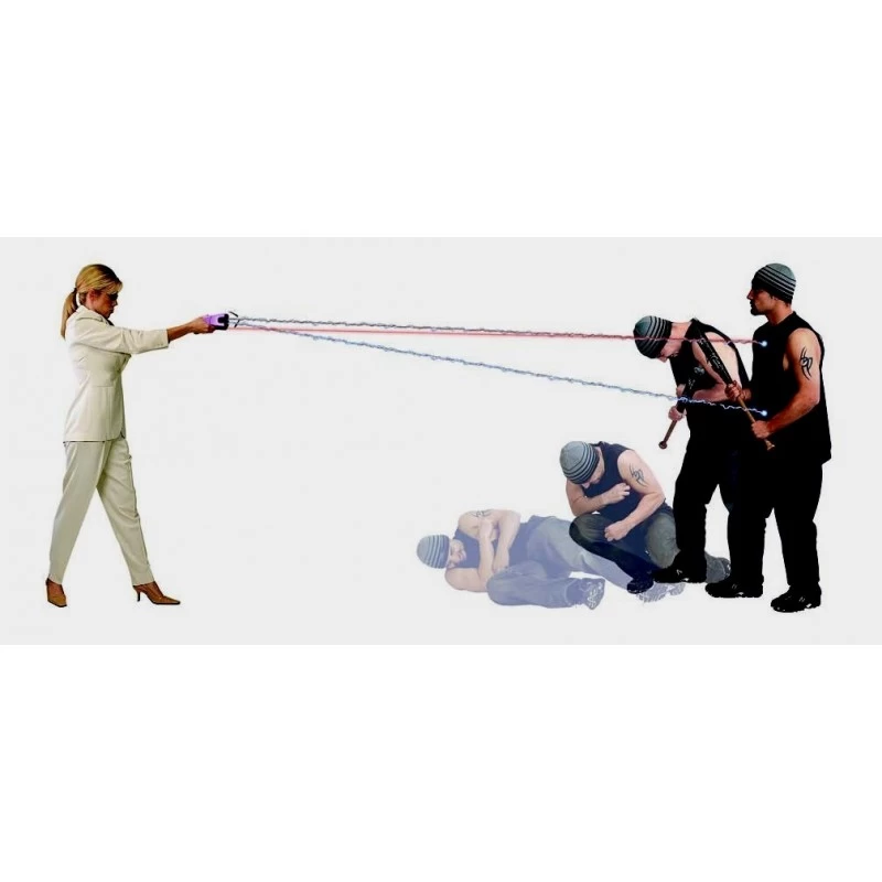 The Taser / Stun Gun is integrated with a variety of advanced technologies, skills, physical self-defense, but also in active attacks within 5 meters. The Taser / Stun Gun is made up of several parts , the gun, the composition of the transmitter, LED Flashlight, laser sight and Siren. Launched from within 5 meters (2.5 meters to 3 meters best)