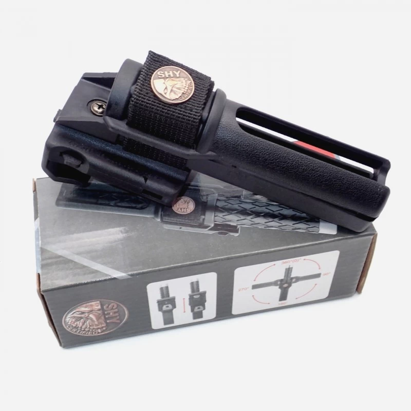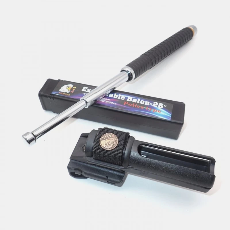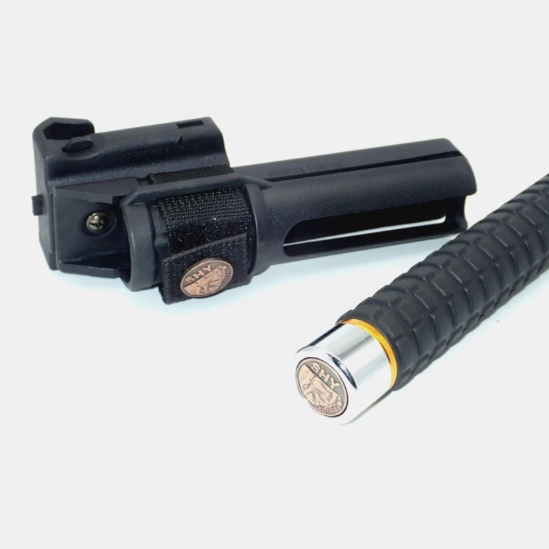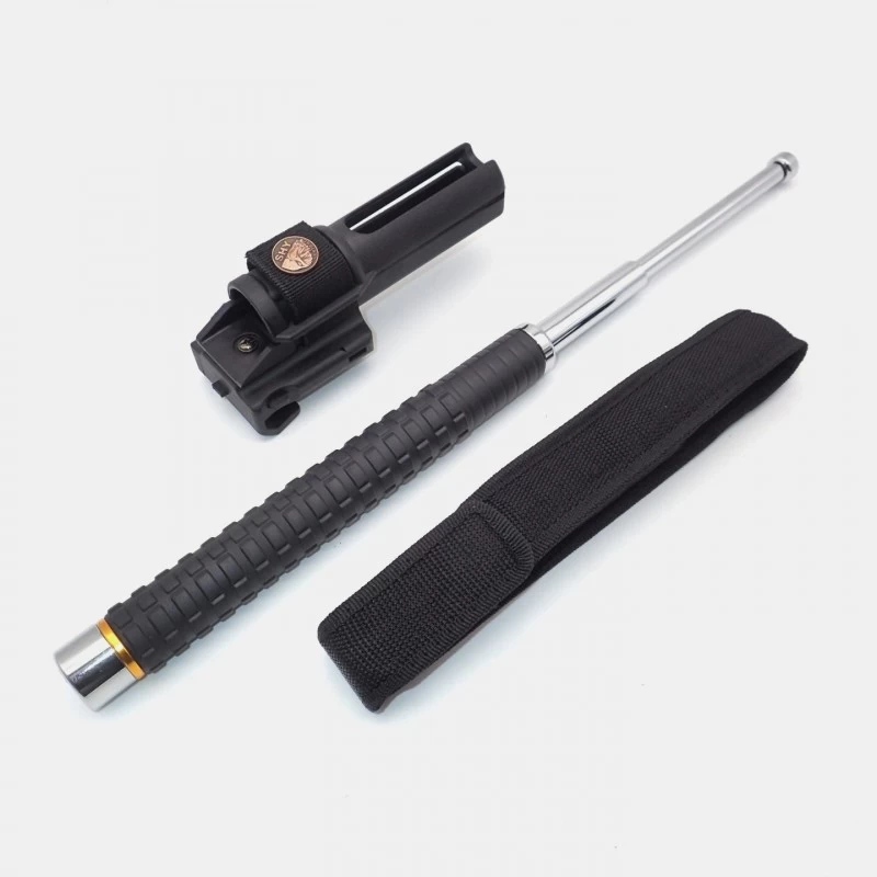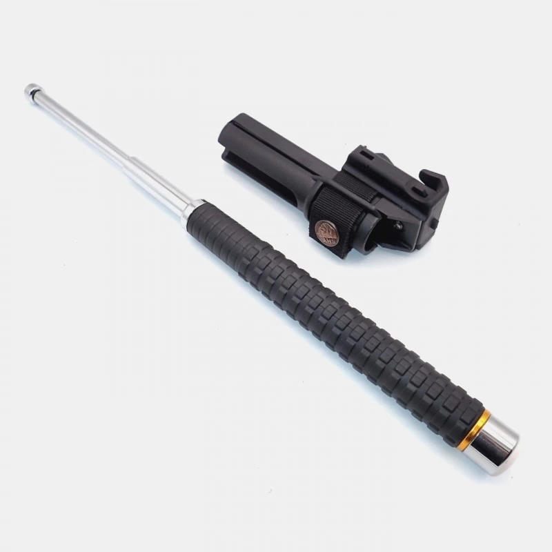 The telescopic baton is supplied with a high quality plastic case. The holder is intended for professional use. The unique design of the case allows the baton to be pulled out very quickly by tilting it with one hand. The holder is made of high-strength plastic.